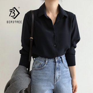 Summer New Arrival Women Solid Black Chiffon Blouse Long Sleeve Casual Shirt Women’s Korean BF Style Chic Tops Feminina Blusa T0