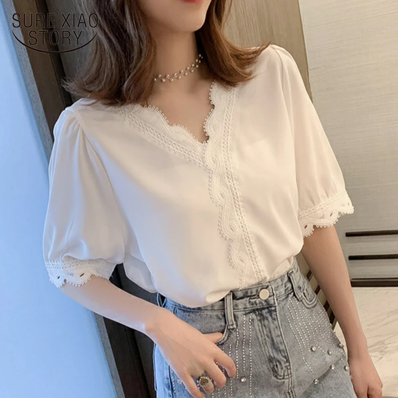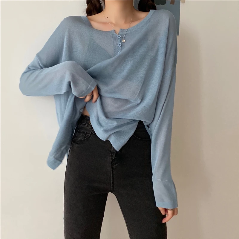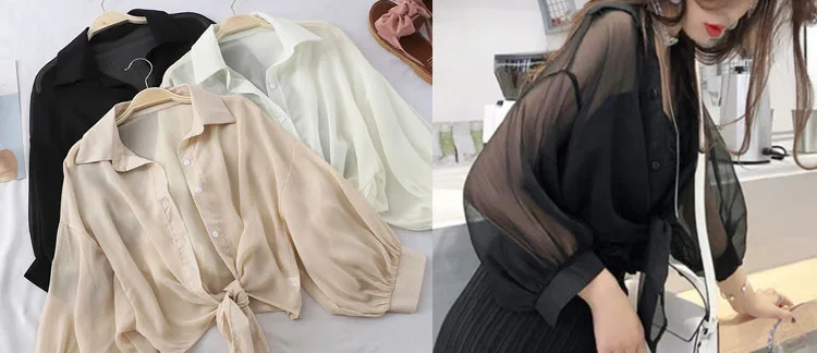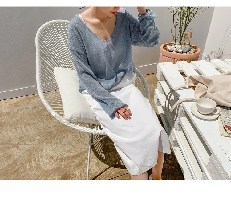 Blusas 2021 Spring Summer Autumn Thin Sexy Women Tops Blouse V-neck Pullover Tops Solid Korean Loose Sunscreen New Lady Clothes